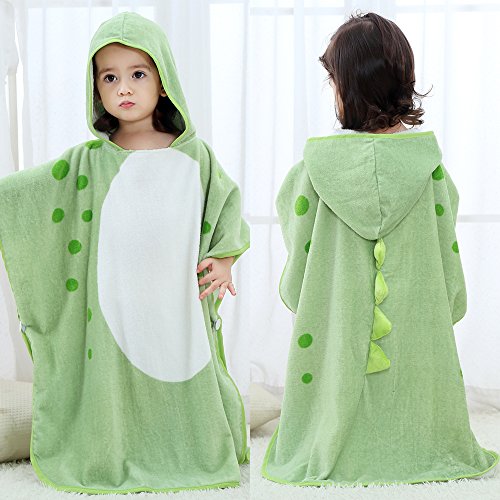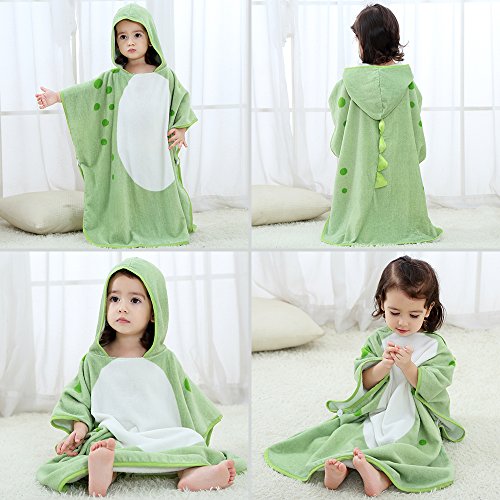 Eleoption フード付きバスタオル ベビー バスローブ ビーチタオル 可愛い おくるみ 子供 フード付き タオル 動物柄 ポンチョ タオル 男の子 女の子 出産祝い お風呂上がり プレゼント ギフト (恐竜-グリーン)