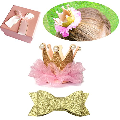 Elesa Miracle Babyヘアアクセサリー赤ちゃんガールズShiny Bowクラウンティアラヘアクリップセット