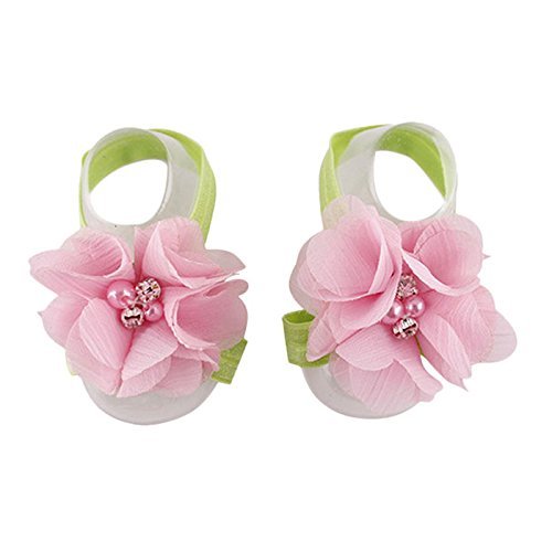 Elevin(TM) Baby Girls Flowers Barefoot Sandals Pop Foot Handmade (Pink1)