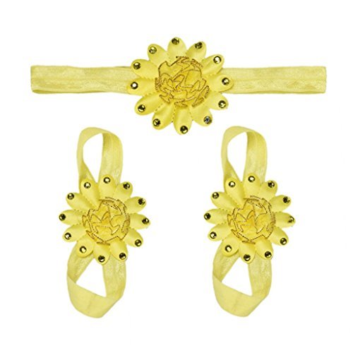 Elevin(TM) Baby Girls Sunflower Bowknot Foot Barefoot Sandals + Headband Set (Yellow) by Elevin(TM)