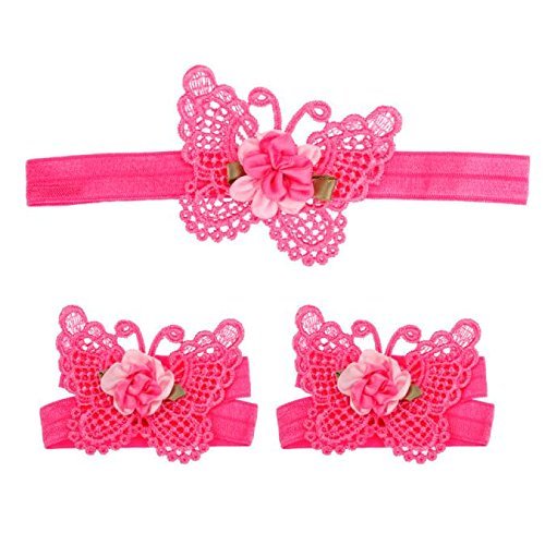 Elevin(TM) Baby Girl Cute Butterfly Design Foot Band Ties Barefoot Sandals Shoes (Hot Pink)