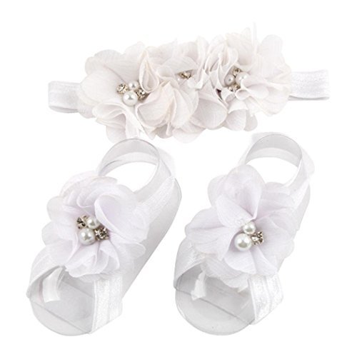 Elevin(TM) Children Baby Cute Flower Barefoot Sandal Shoes with Headband (White)