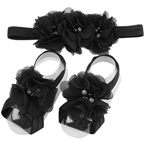 Elevin(TM) Children Baby Cute Flower Barefoot Sandal Shoes with Headband (Black)