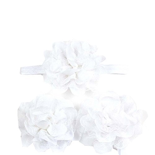 Elevin(TM) Cute Baby Girls Toddler Flower Hairband headband Flower Barefoot Sandal (White) by Elevin(TM)