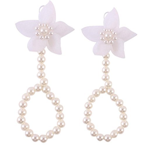Elevin(TM) Trendy Fashion Toddler Baby Beautiful Pearl Chiffon Barefoot Flower Anklet (White)