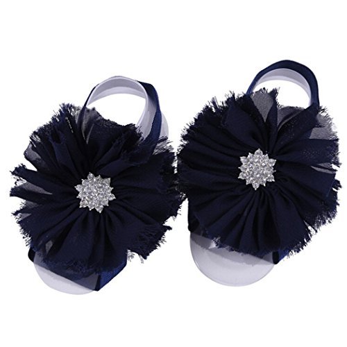 Elevin(TM) Infant Newborn Girls Pearl Chiffon Barefoot Toddler Foot Flower Beach Sandals (Navy)