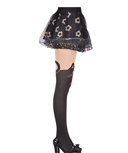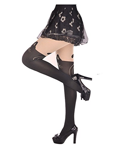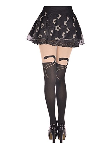 EluflyレディースジャカードパンティーストッキングブラックCat Tieシルクソックス カラー: ブラック