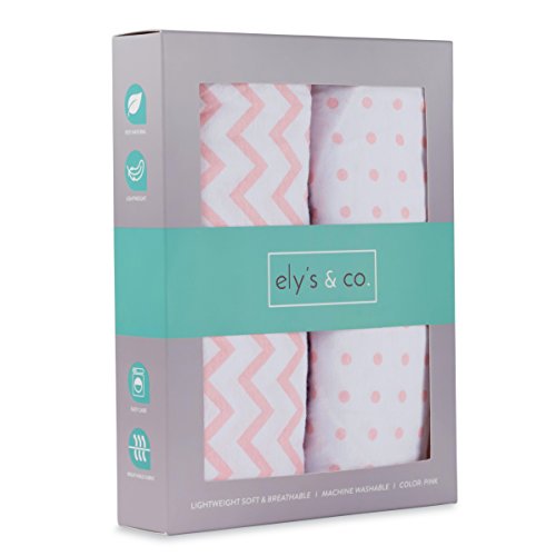 Pack N Play Portable Crib Sheet Set 100% Jersey Cotton for Baby Girl by Ely's & Co. - Pink Chevron and Polka Dot by Ely's & Co