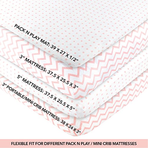 Pack N Play Portable Crib Sheet Set 100% Jersey Cotton for Baby Girl by Ely's & Co. - Pink Chevron and Polka Dot