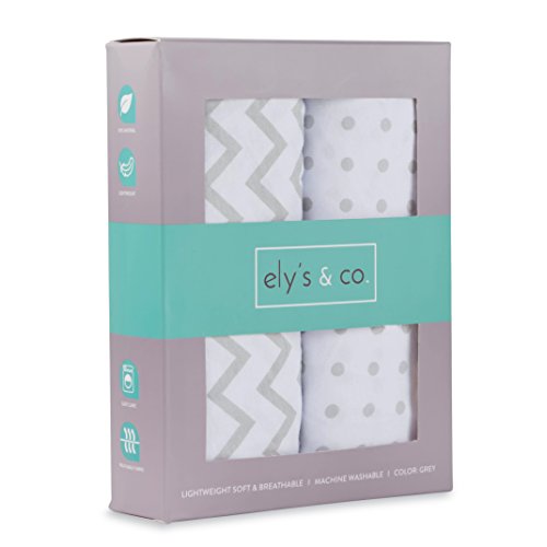 Changing Pad Cover Set | Cradle Sheet Set 100% Cotton Jersey Knit Unisex for Baby Boy and Baby Girl - Grey and White Chevron and Polka Dots by Ely's & Co