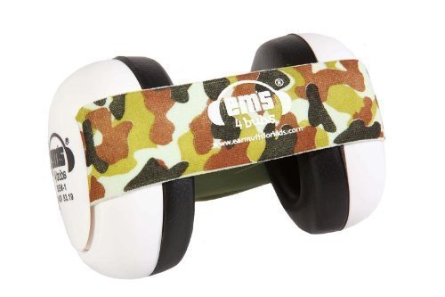 Em's 4 Bubs Hearing Protection Baby Earmuffs (White with Camo Headband)