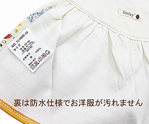 • 表は綿ですが裏は防水仕様の為お洋服を汚しません。二段階スナップボタンで首回りに合わせて長さが調節可能