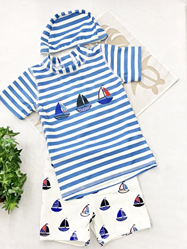 - セット内容:キャップ、半袖トップ水着、ハーフパンツ水着の3点セット