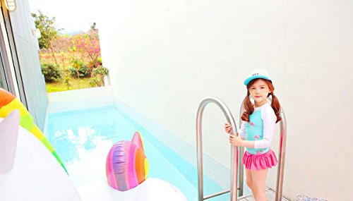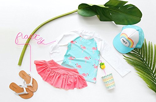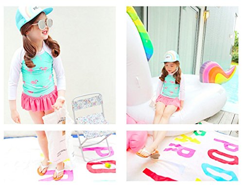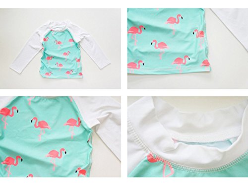 Emfay キッズ 女の子 水着 セパレート フラミンゴ柄 長袖 女児水着 ラッシュガード キャップ付き ブルー 110-120cm