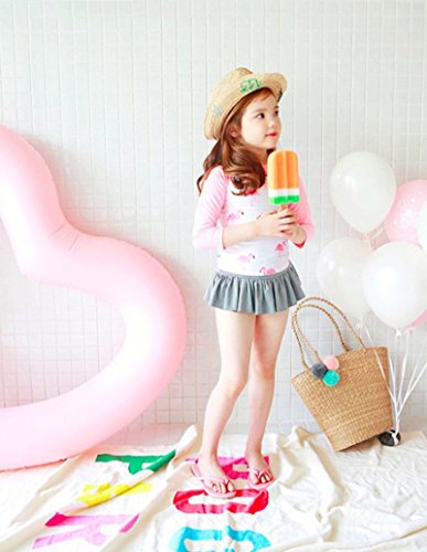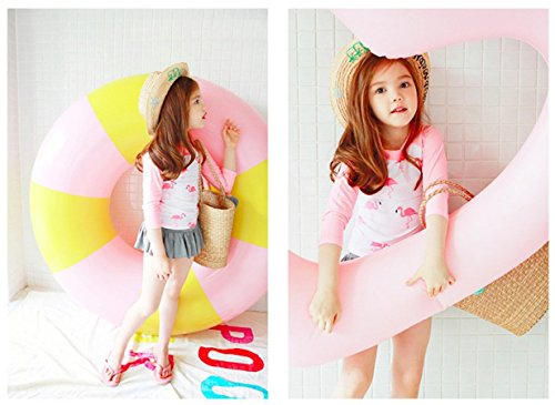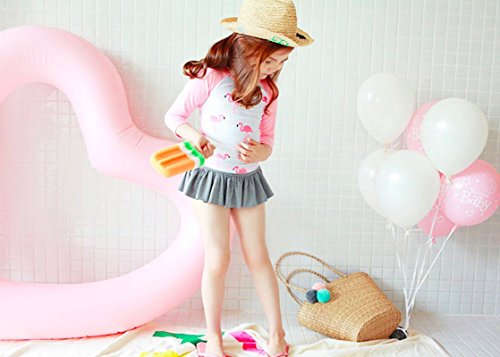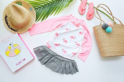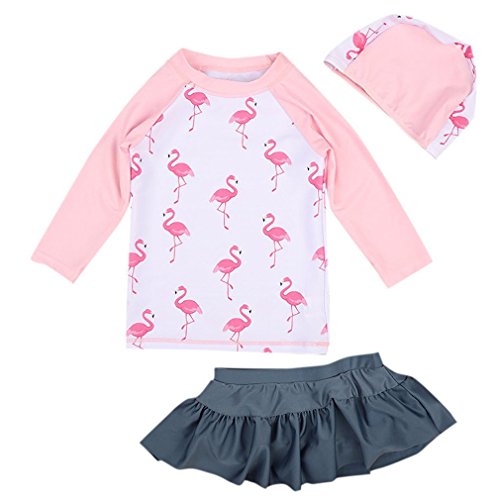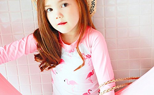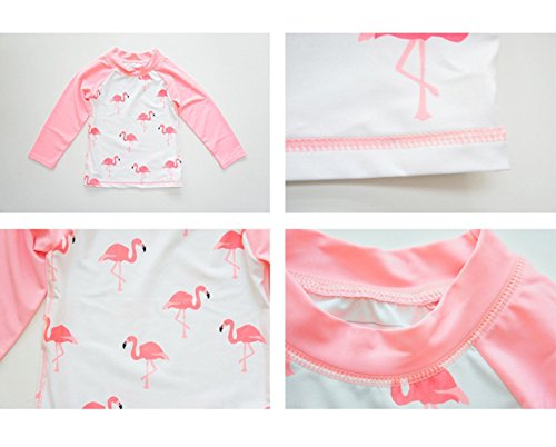 Emfay キッズ 女の子 水着 セパレート フラミンゴ柄 長袖 女児水着 ラッシュガード キャップ付き ピンク 80-90cm