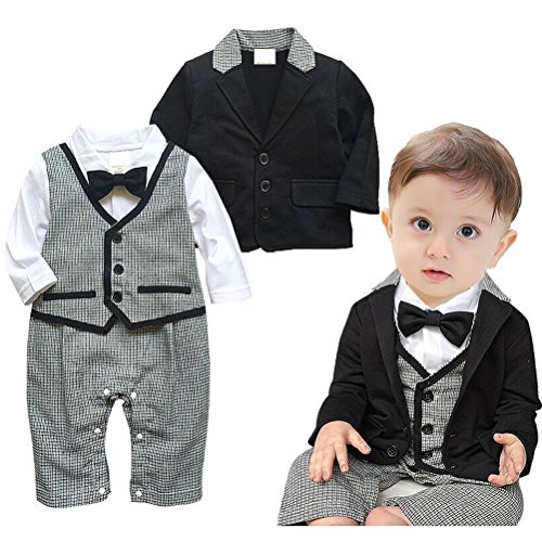 Emfay 男の子 ベビー フォーマル ロンパース 長袖 紳士服 新生児 幼児 スーツ 初節句 結婚式 80cm