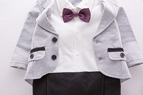 Emfay ベビー フォーマル ロンパース 子供服 スーツ 男の子 結婚式 出産祝い 七五三 記念撮影 グレー 90cm