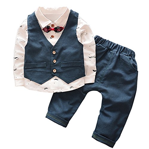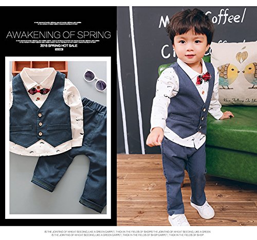 Emfay ベビー フォーマル 男の子 スーツ 長袖 子供タキシード 入園式 結婚式 七五三 新生児 ブルー 80cm