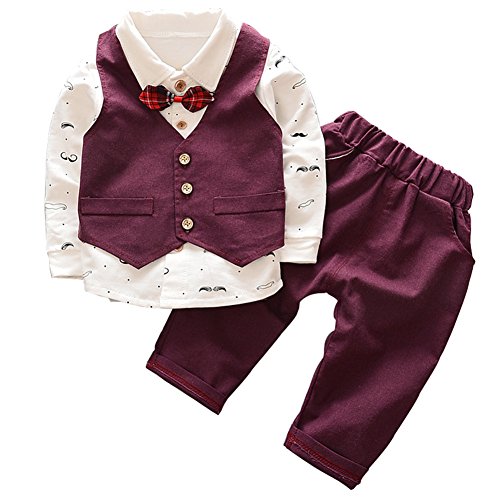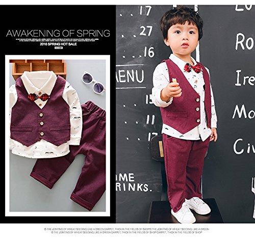 Emfay ベビー フォーマル 男の子 スーツ 長袖 子供タキシード 入園式 結婚式 七五三 新生児 ワインレッド 80cm