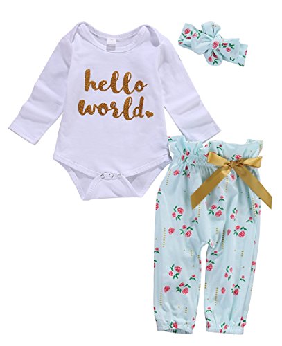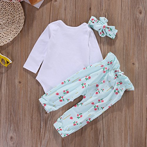 ベビー女の子ホワイト長袖ロンパース花柄パンツレギンスヘッドバンドOutfitパジャマセット カラー: ホワイト