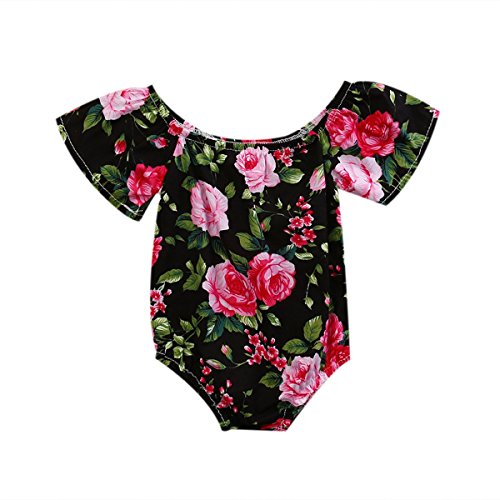 赤ちゃん女の子ロンパースオフ肩花ボディスーツRuffle Sunsuit PlaysuitボタンOutfit カラー: ピンク
