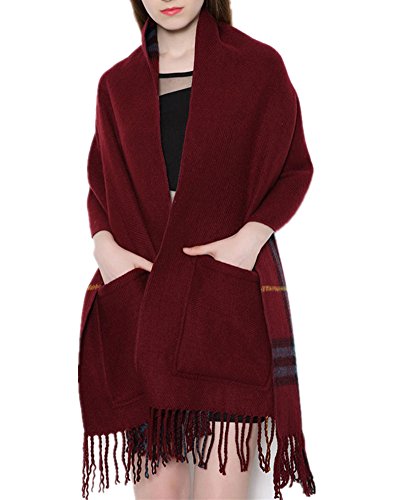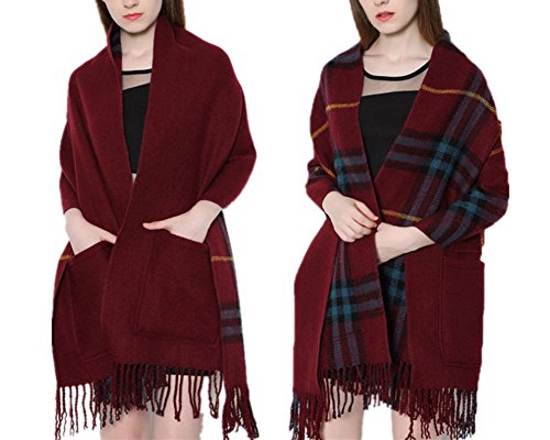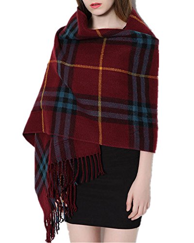 Emoyi マフラー 大判 ストール ロングマフラー チェック マフラー フリンジ メンズ レディース 男女 兼用 (ブルゴーニュ(酒红))
