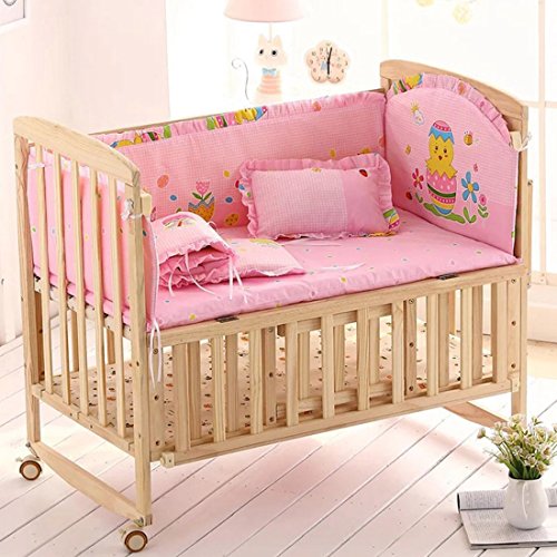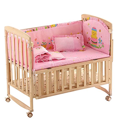 [Enerhu]ベッドバンパーベビー ベッドガードパット5点セット 全周 洗濯可能 怪我防止 ピンク L