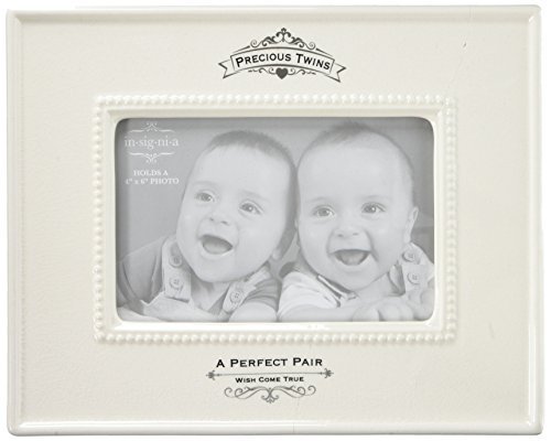 Stoneware frame with crackle finish packaged in an elegant signature box;Intricate silver mirror finish decal with message that reads 'Precious Twins | A Perfect Pair | Wish Come True';Enesco Gift-manufacturing the most beloved home decor products for more than 50 years;Artist designed; globally recognized for quality;Measures 7.625 in H x 0.75 in W x 9.5 in L