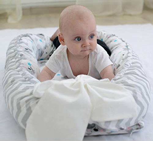 - 軽量で目的や用途に合わせて持ち運びができるクッションのようなベビーベッド。添い寝ベッドとしても使用可能、腹ばいの練習にもぴったり