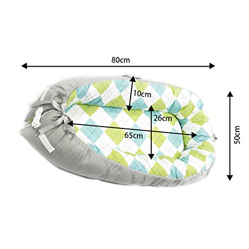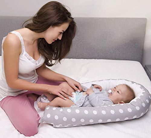 - 軽量で目的や用途に合わせて持ち運びができるクッションのようなベビーベッド。添い寝ベッドとしても使用可能、腹ばいの練習にもぴったり