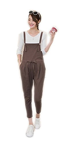 【エンーソ】Ensor マタニティ サロペット オーバーオール ストレッチパンツ ビブ 楽ちん レディース カジュアル 秋 長パンツ産前 産後 長く使える おしゃれ 妊婦服 秋パンツ 4カラー 4サイズ (XXL, カフェー)