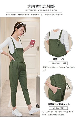 【エンーソ】Ensor マタニティ サロペット オーバーオール ストレッチパンツ ビブ 楽ちん レディース カジュアル 秋 長パンツ産前 産後 長く使える おしゃれ 妊婦服 秋パンツ 4カラー 4サイズ (M, グリーン)