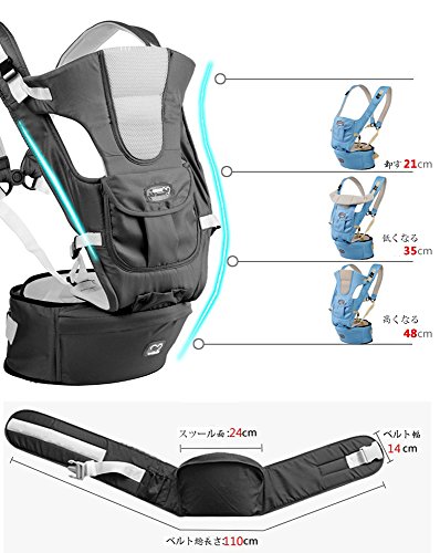 - 対面抱き、前向き抱き、おんぶ、腰抱きも可能で使い方は8通りになります。赤ちゃんの自然なすわり姿勢を支える最上級のコンフォートを実現!