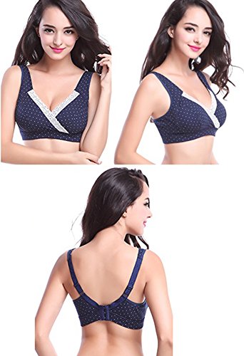 サイズアップに対応!アンダー75から90まで!マタニティブラジャー ハーフトップ 延長ホック付 水玉ブラ 5色選べる (L80, ネイビー)