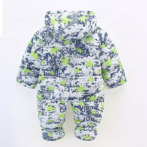 キッズ ベビー カバーオール ロンパース ダウンジャケット ボディスーツ 防寒アウター フード付き スキーウェア アウタースーツ 着ぐるみ 連体衣装 (80cm, グリーン)