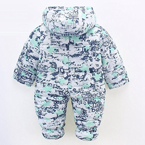 キッズ ベビー カバーオール ロンパース ダウンジャケット ボディスーツ 防寒アウター フード付き スキーウェア アウタースーツ 着ぐるみ 連体衣装 (100cm, スカイブルー)
