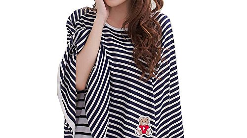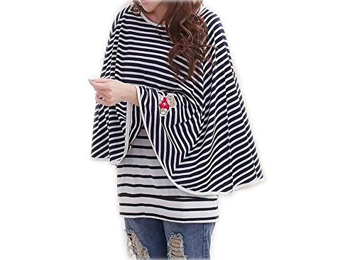 授乳ケープ 授乳ポンチョ 授乳カバー 授乳服 妊娠 出産 授乳用 多機能 肌に優しい 360度安心 授乳ケープ マタニティウェア ボーダートップス フリーサイズ 6色選べる 普段着にも使える (ボーダー紺×白)