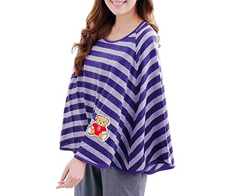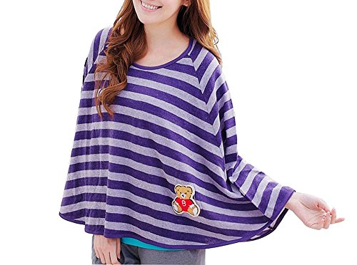 授乳ケープ 授乳ポンチョ 授乳カバー 授乳服 妊娠 出産 授乳用 多機能 肌に優しい 360度安心 授乳ケープ マタニティウェア ボーダートップス フリーサイズ 6色選べる 普段着にも使える (パープル)