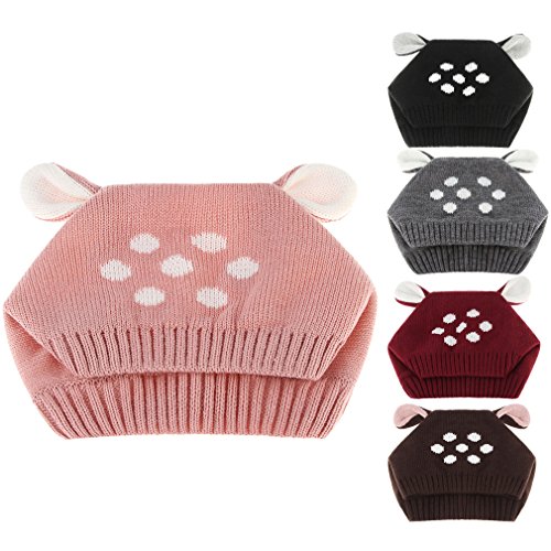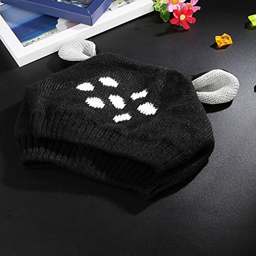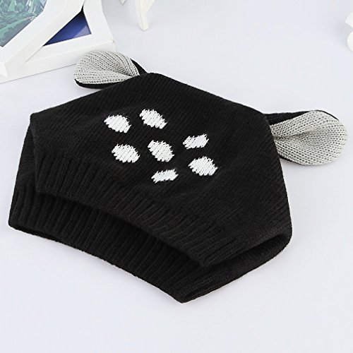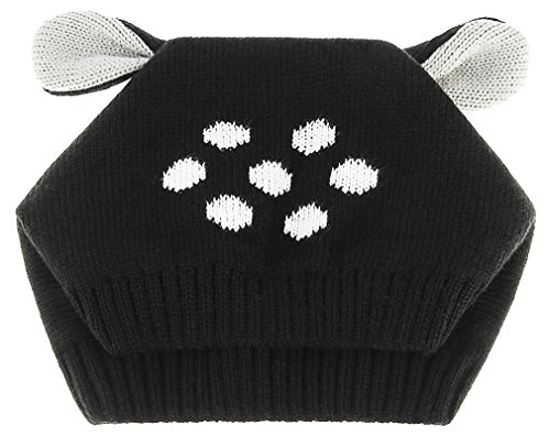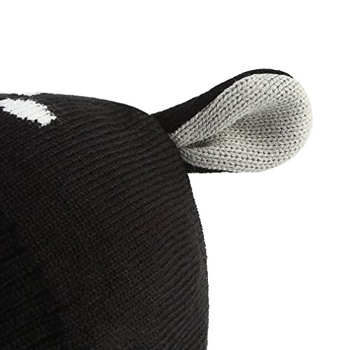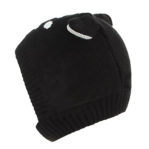 GEMVIE ベビーハット 子供 ニット帽子 可愛い 防寒 防風 男の子 女の子 キャップ キッス帽子 アニマル 耳飾り 散歩 お出かけ ブラック