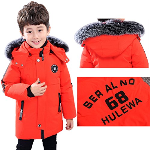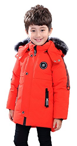 EOZY 子供服 棉服 冬 ジャケット コート フード付き 防寒 暖かい アウター 男の子 ボーイズ ポケット 通園 通学 お出かけ ロングコート 110 オレンジ