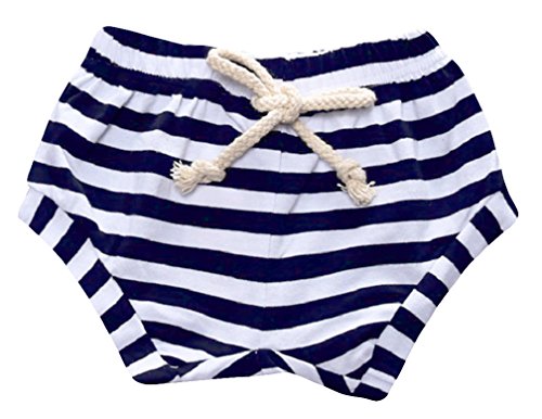 EOZY ショートパンツ 短パン ハーフパンツ 子供 ベビー キッズ 男女兼用 通気 柔らかい サマー 綿 コットン ボーダー お出かけ 普段着 部屋着 出産祝い ダークブルー 90