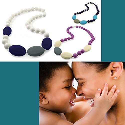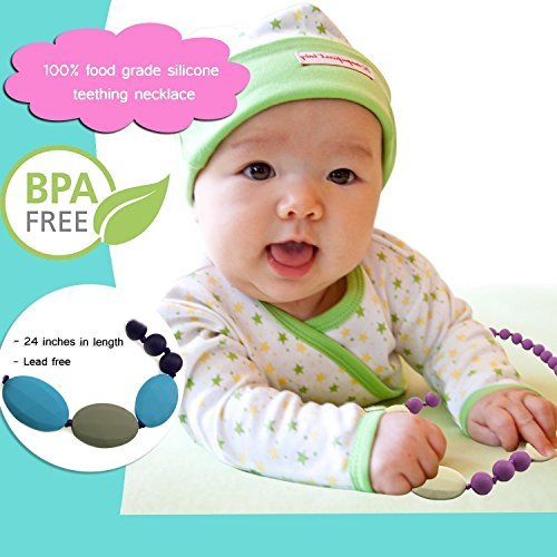Wearing a teething necklace during breastfeeding will keep baby engaged in the task at hand and provides visual stimulation and fun which may lead to longer feeding sessions. Experienced nursing mothers know that an infant is going to grab your necklace regardless, so make it a safe one!
