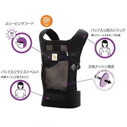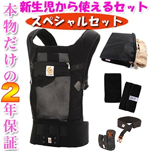 Ergobaby SG新仕様 【日本正規品保証 日本限定ベビーウエストベルト付】エルゴベビー ベビーキャリア ヴェントスブラック スペシャルセット(よだれパッド+収納ポーチ付き)