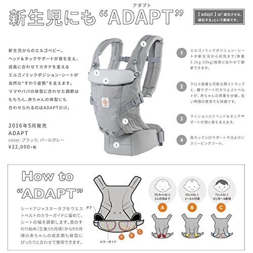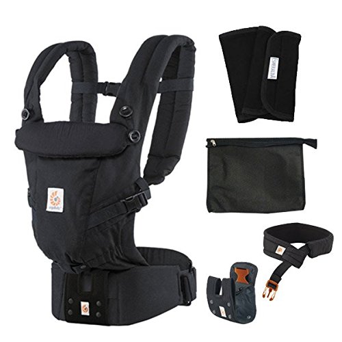 ベビーウエストベルト付 エルゴベビー ベビーキャリア ADAPT(アダプト) 抱っこひも ブラック(収納ポーチ+よだれパッド付)【正規代理店2年間保証付】