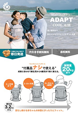 赤ちゃんの成長にADAPTするエルゴベビー・ベビーキャリア ■ 商品説明 対面抱き、腰抱き、おんぶの抱き方でご使用いただけます。 エルゴノミックポジション・シートが新生児か幼児(3.2kg~20kg)までの成長に合わせて調節ができます。 クロス装着も可能な肩ストラップと、腰サポート付きウエストベルトが赤ちゃんの荷重を分散。長い時間の使用でも快適です。 クッション入りネック&ヘッドサポートが頭と首を支えます。 ■ スリーピングフード 首カックンのサポートや、日除けにスリーピングフード ※開封後のご返品につきましては、承ることができかねます。 【素材】 ベビーキャリア本体:内生地・外生地:綿100% ベビーウエストベルト:ポリエステル100% 【対象】 月齢0ヶ月~48ヶ月サイズウエスト回り132cmまで 【原産国】ベトナム 【付属品】INSTRUCTION MANUAL、取扱説明書、保証カード、ベビーウエストベルト