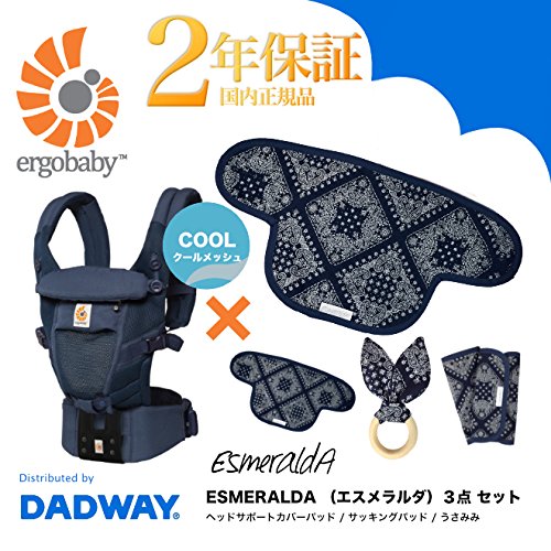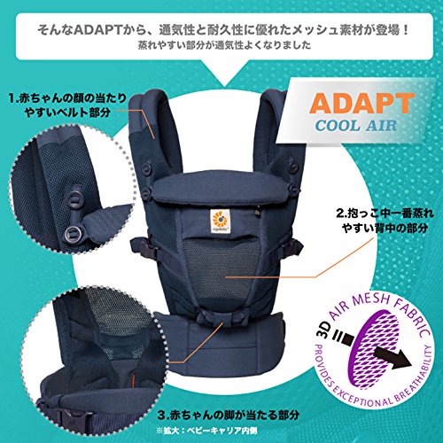 エルゴベビー ベビーキャリア ADAPT(アダプト) クールエアー メッシュ 抱っこひも ディープブルー (ヘッドサポート+よだれパッド+うさみみ(歯固め)付)【正規代理店2年間保証付】