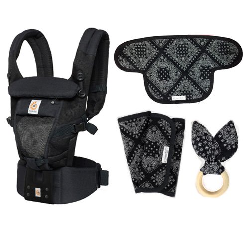 エルゴベビー ベビーキャリア ADAPT(アダプト) クールエアー メッシュ 抱っこひも ブラック (ヘッドサポート+よだれパッド+うさみみ(歯固め)付)【正規代理店2年間保証付】