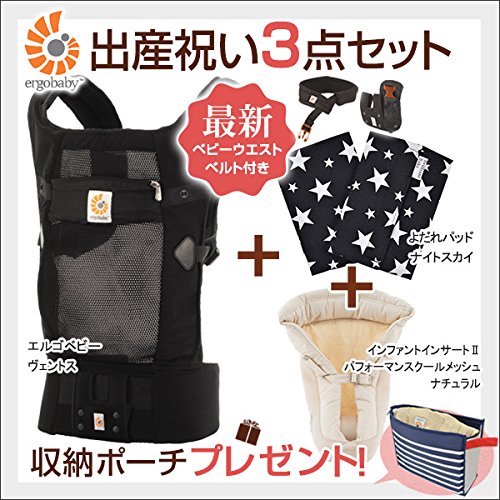ErgoBabyCarrier エルゴベビー 抱っこ紐 + インファントインサート2 クールメッシュナチュラル + サッキングパッド【日本正規販売店2年保証】 (ヴェントス)
