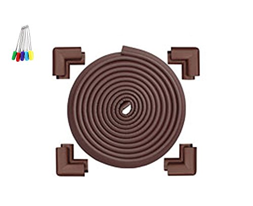 ケガ防止 衝撃吸収 コーナーガード クッション 2M ベビーガード キッズ ベビー マタニティベビー安全ピン5枚 (コーナー ガードU型2M1枚+L型4枚+安全ピン5枚(ブラウン))