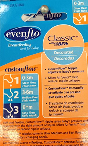 EvenfloクラシックCustomflowニップルボトル# 1 0 – 3 M Baby Slow Flow without sin BPA 8オンス( 240ml ) -デザインMay Very